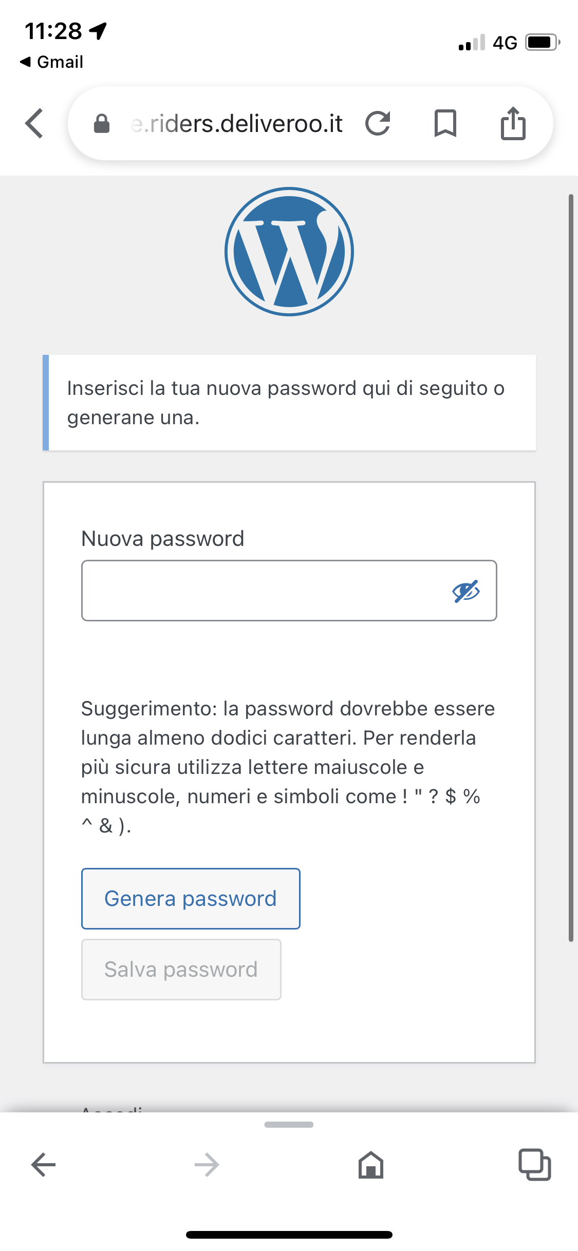 Successivamente riceverai una comunicazione con un link per ripristinare la tua password. Ti invitiamo a cliccare sul link e generare una nuova password come nell'immagine.