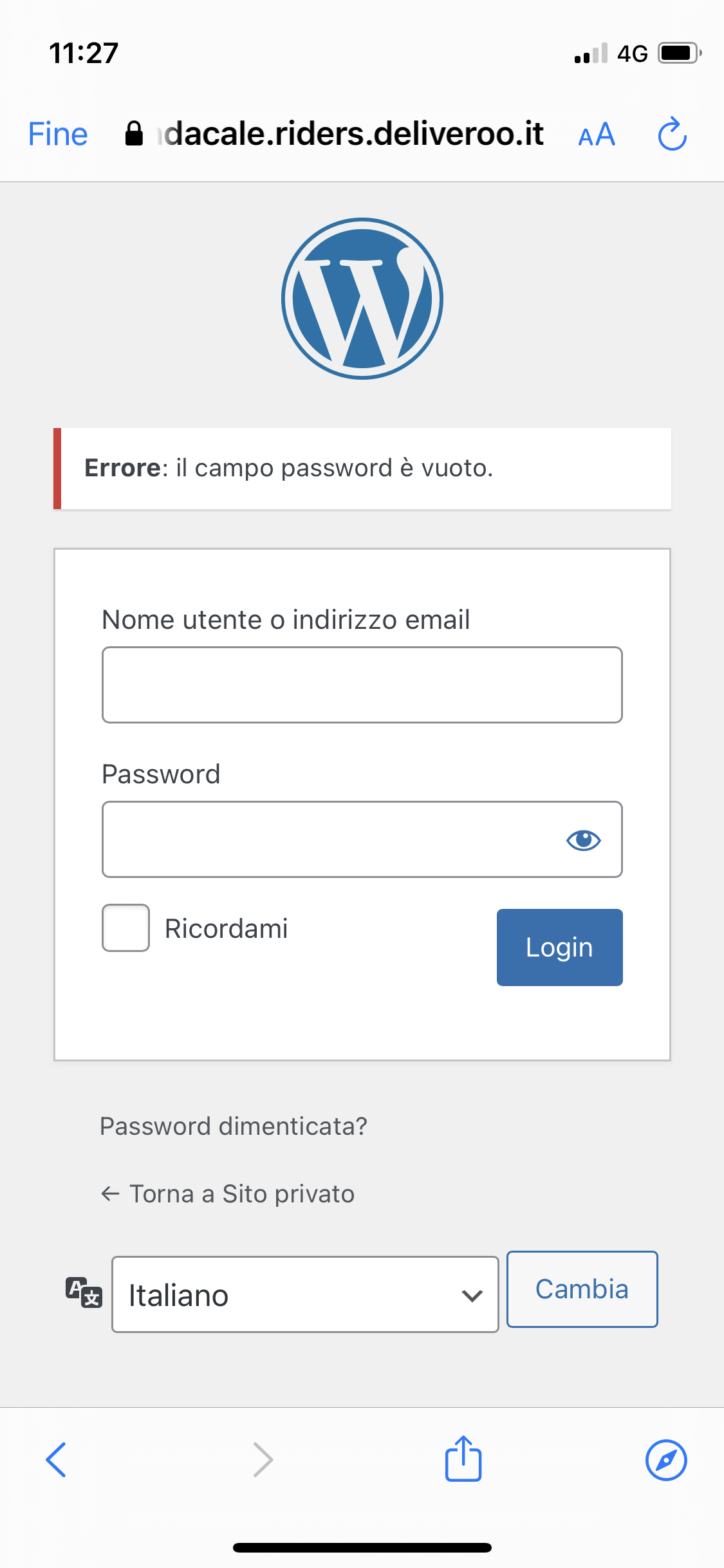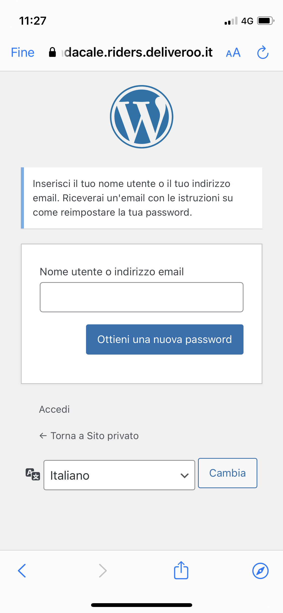 Inserisci l'indirizzo e-mail del tuo account Deliveroo Rider e clicca su "Ottieni una nuova password".