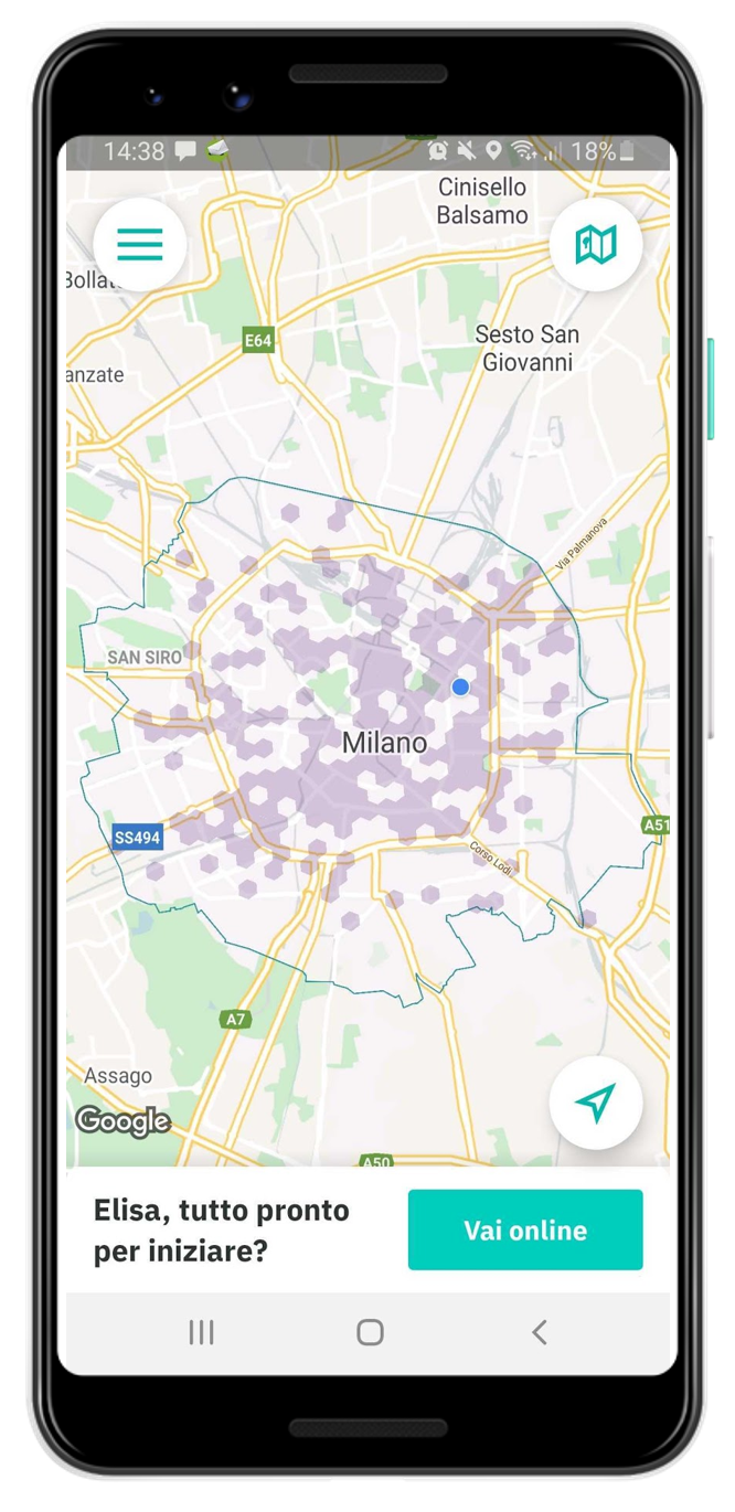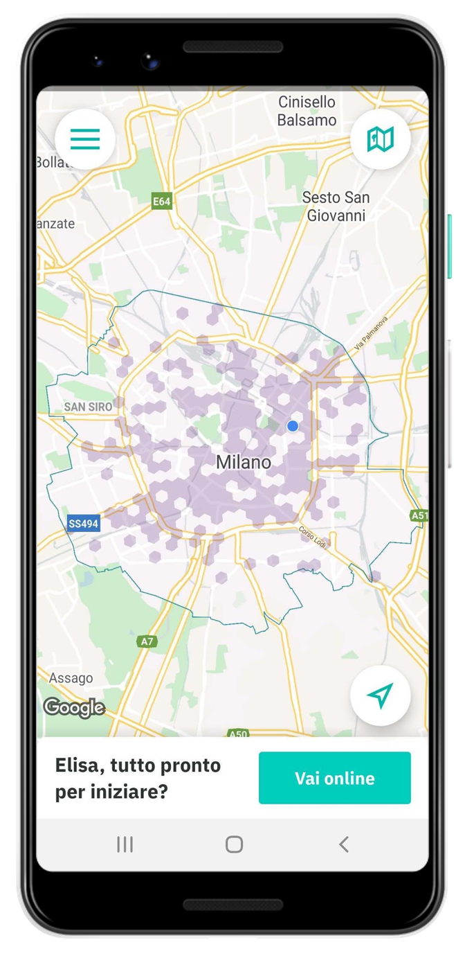 Dopo aver effettuato l'accesso all'app clicca su "Vai online" per iniziare a ricevere le prime proposte di consegna.