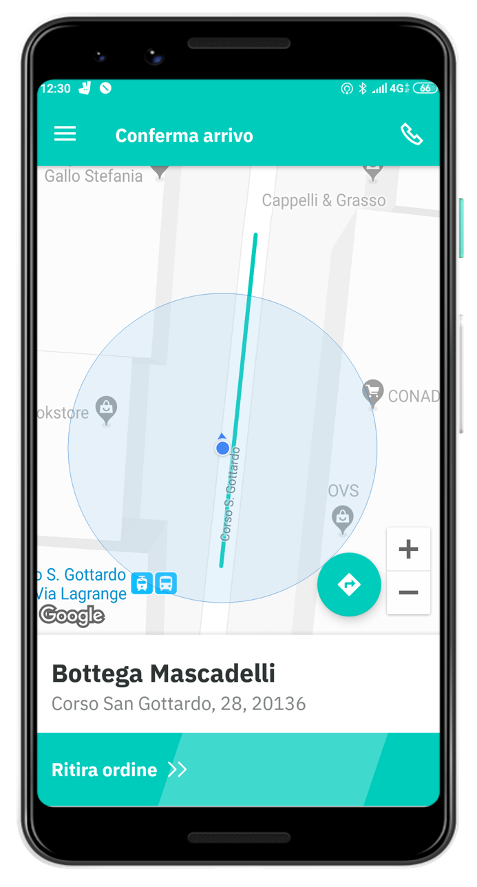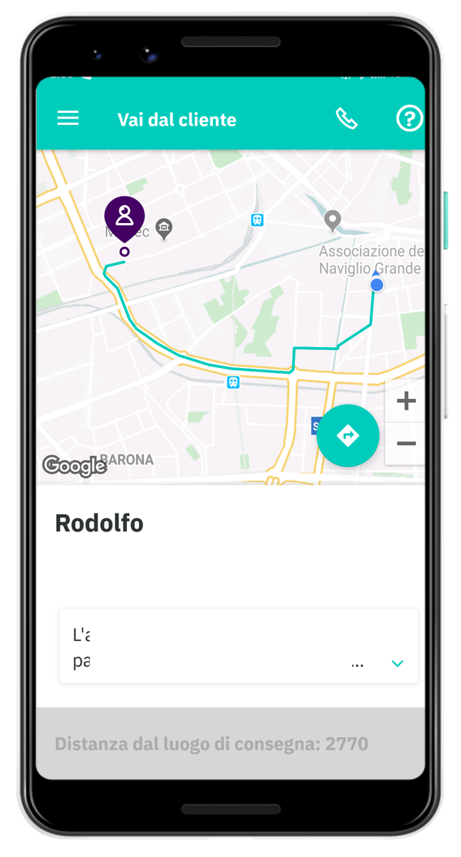 Successivamente l'app mostrerà il percorso consigliato per raggiungere il cliente.
